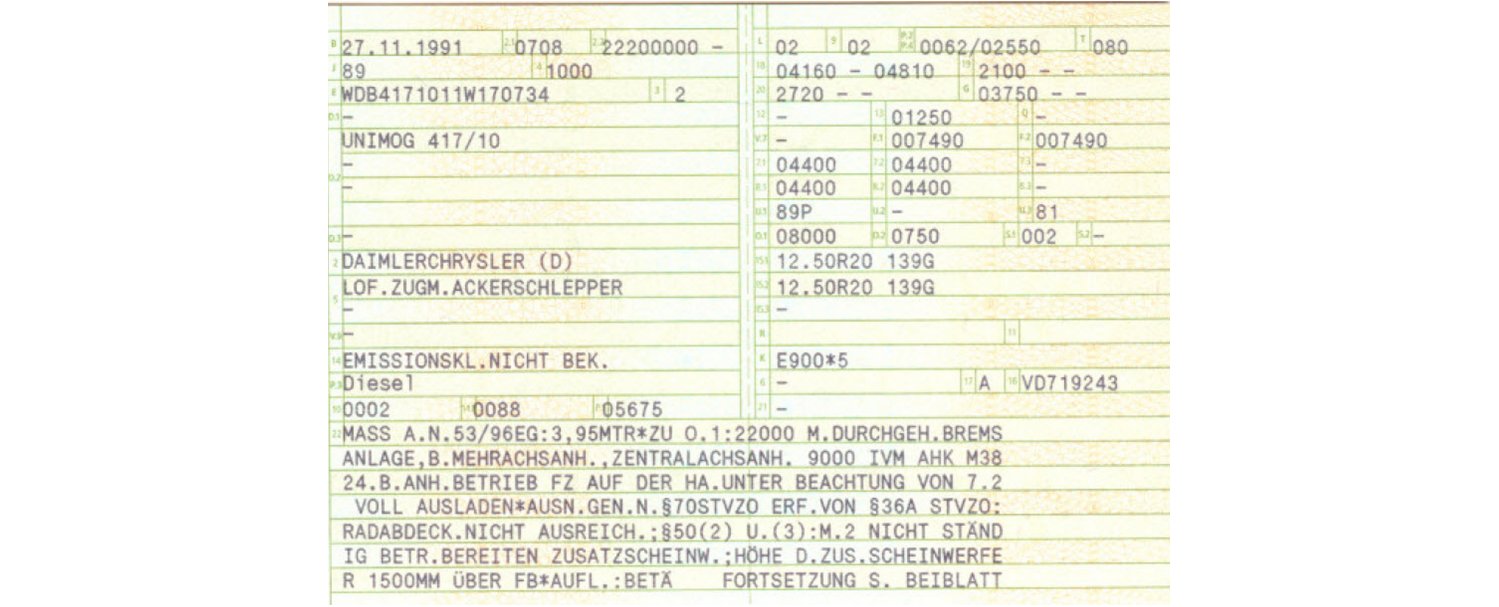 amtliche Das wichtigste amtliche Dokument ist sicher der “Kfz-Schein”, jetzt “Zulassungsbescheinigung Teil I” genannt (s.o.).